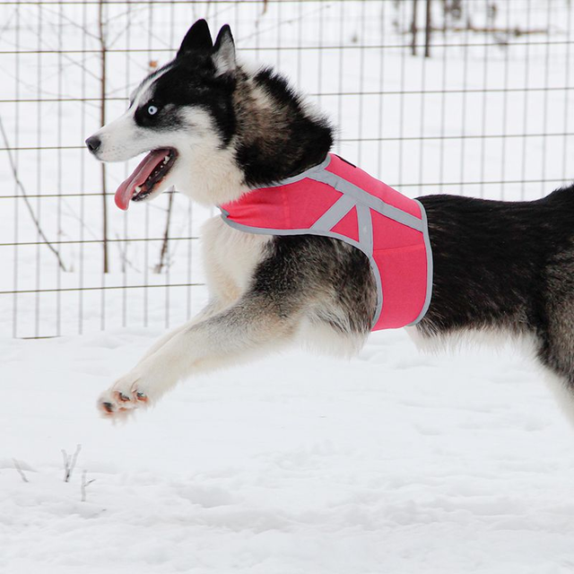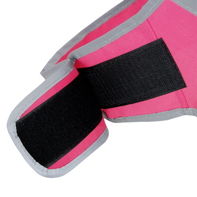 - Raikas huomioväri ja runsaasti heijastinnauhaa varmistavat koiran näkyvyyden.