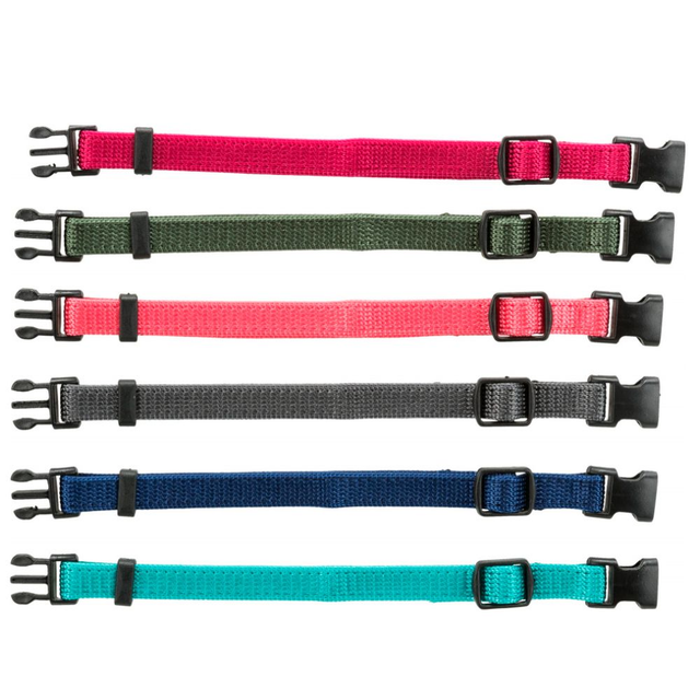 Turvalukolliset, vetämällä aukeavat kevyet merkkaus- ja harjoituspannat pienille koiranpennuille kasvattajalla. Kestävää, litteää nylonia. Pannoissa ei ole D-lenkkiä taluttimelle. Portaattomasti säädettävä panta kasvaa pennun mukana. Kussakin setissä on kuusi eri väristä pantaa.